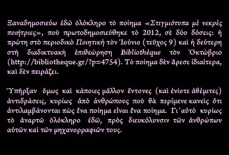 8 σκέψεις πάνω στὸ “στιγμιότυπα μὲ νεκρὲς ποιήτριες