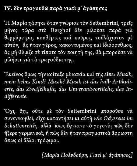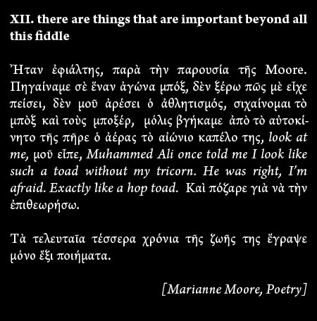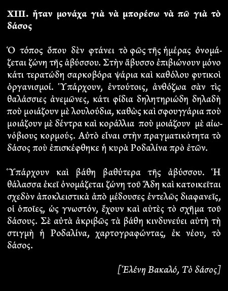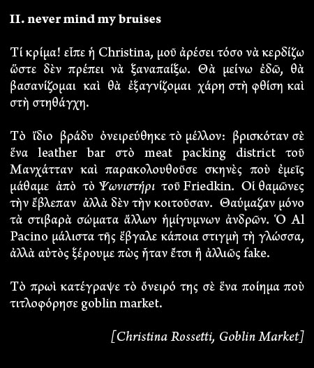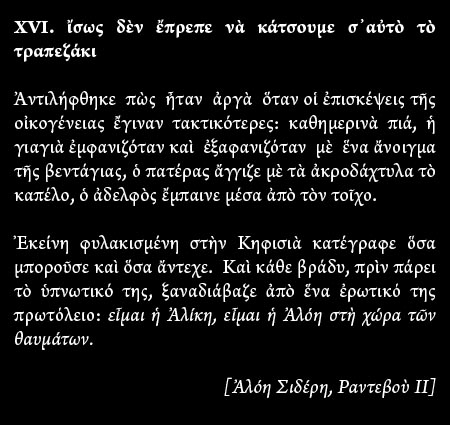 Ἀπὸ τὴν ἄλλη μεριά, ἴσως ὅλο αὐτὸ νὰ εἶναι ἁπλῶς ἕνα παραλήρημα, ἀλλὰ σὲ κάθε περίπτωση, δὲν εἶναι ρεπορτάζ, εἶναι ποίημα.