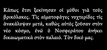 με βρικόλακες και φανταστικές μορφές της νύχτας δεν τα είχα ποτέ καλά. Το έργο των σκουληκιών όμως, το σέβομαι. Ξενικός Ἀπάντηση