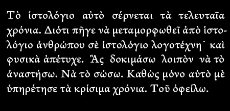 1. Αυτό το ιστολόγιο όμως δεν πέθανε για να αναστηθεί τώρα. Κάπου εξάλλου η γραφή του αποδίδει τέτοιες νεκροφάνειες σε «ξοφλημένες ταινίες τρόμου». Η ζωή της γραφής παραμένει και συνεχίζει πέρα και πάνω από τις κατσαρίδες. Όσο σημαίνει.