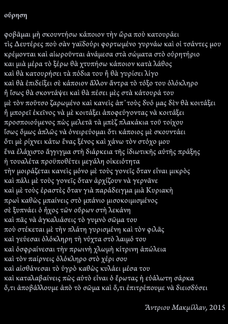 Τὸ πρῶτο βιβλίο τοῦ Andrew Mcmillan μὲ τίτλο Physical, ἀπὸ ὅπου προέρχεται αὐτὸ τὸ ποίημα, ἐκδόθηκε τὸ καλοκαίρι ἀπὸ τὸν Jonathan Cape.