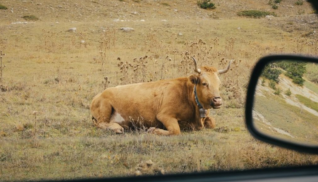 Ἔξω ἀπὸ τὸ παράθυρο, ἀπομακρύνονται οἱ ἀγελάδες καὶ οἱ ἀγροί