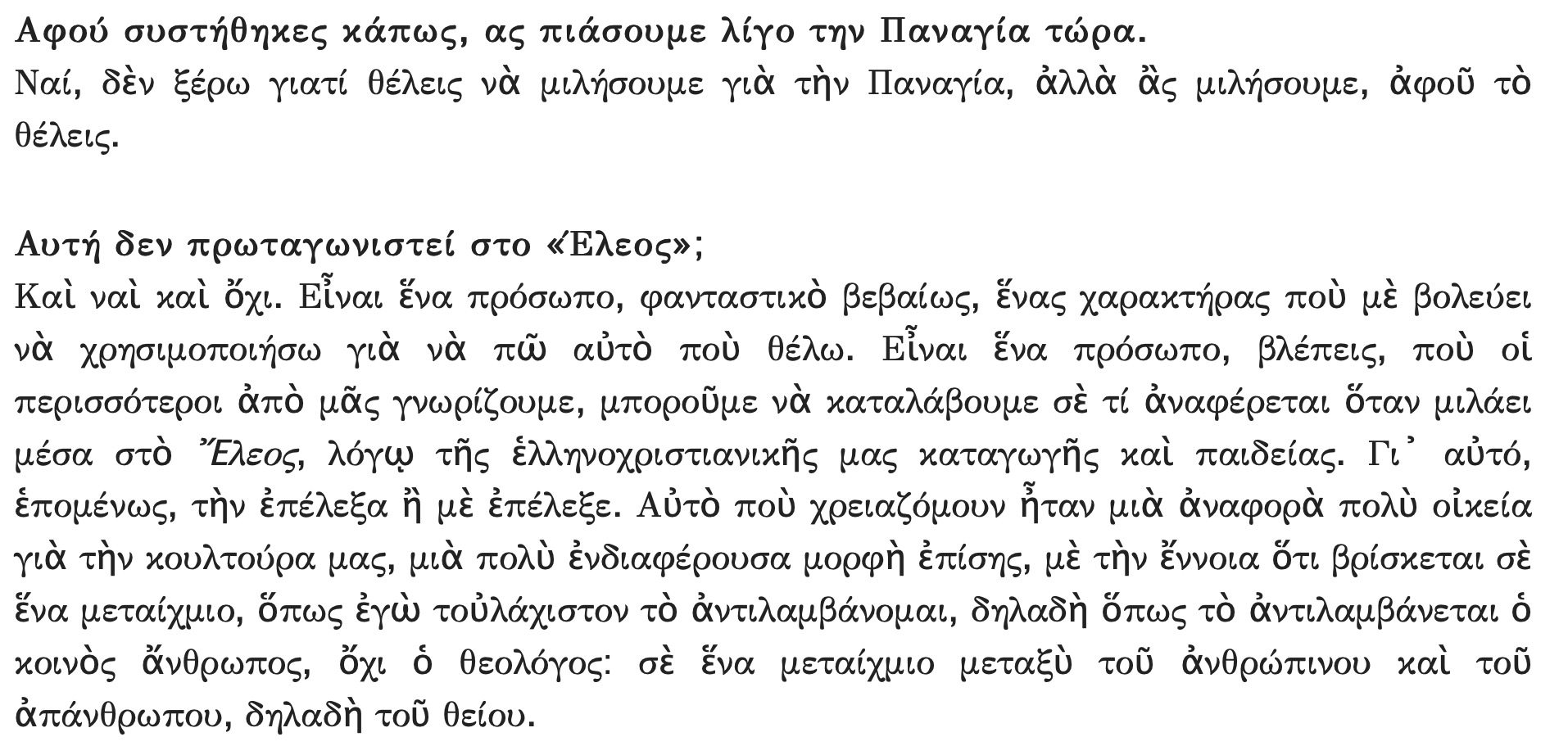 Τὴ συνέντευξη αὐτὴ μπορεῖτε νὰ διαβάσετε ἐδῶ.