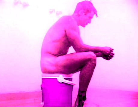 μ᾽ἔνα αὐτοσχέδιο μαστίγιο ἀπὸ σκοινιὰ καὶ λάστιχα